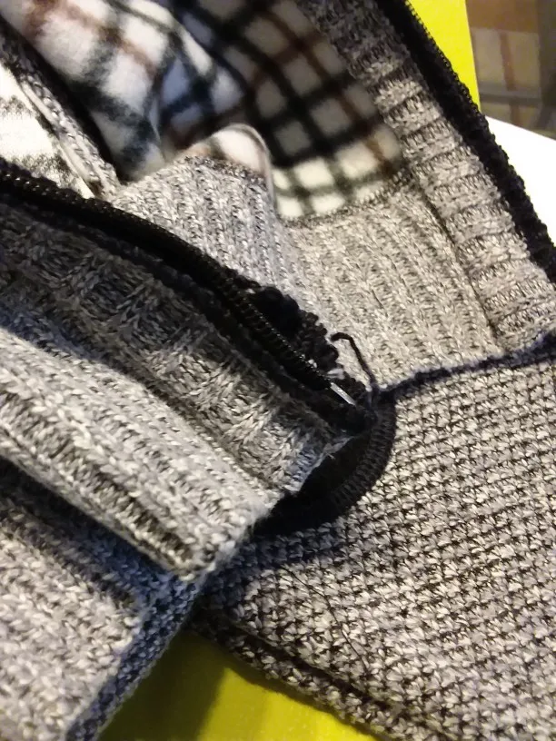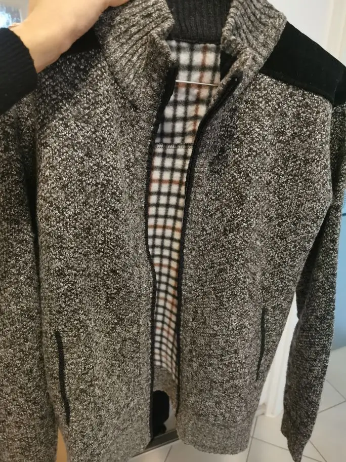 Свитер с низу флисовый, сверху буклированные нитки. Связан качественно. Очень теплый. доставка быстрая.