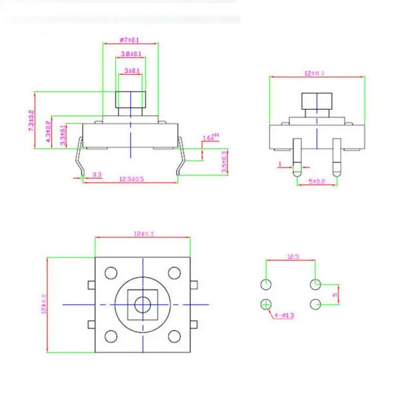 Тактильный кнопочный мини-переключатель 12x1, 2 мм, DIP, 4 контакта, 12x12x4.3567.3-9 мм 12*12*4,3 мм 5 мм 6 мм 7 мм 8 мм 9 мм