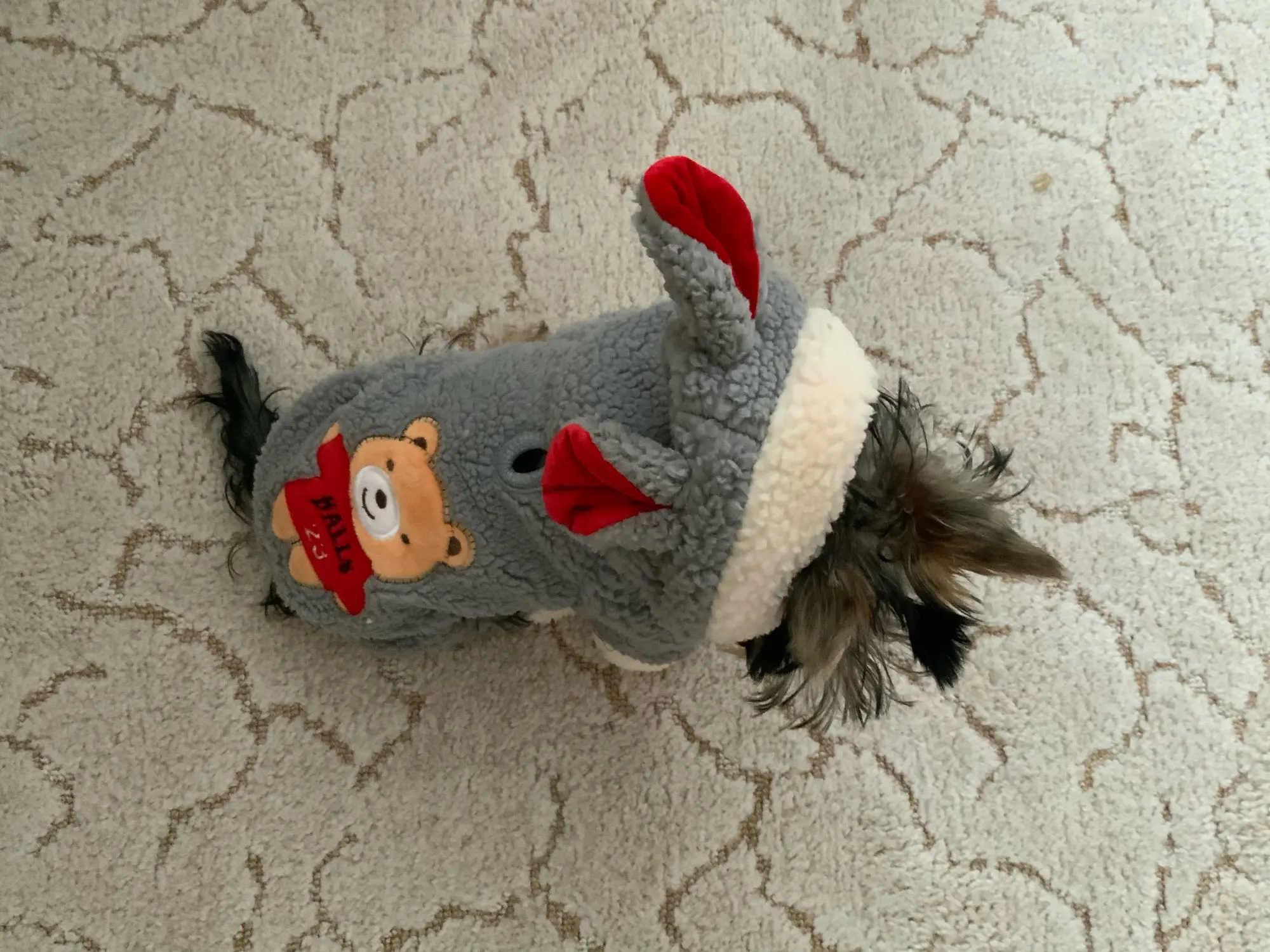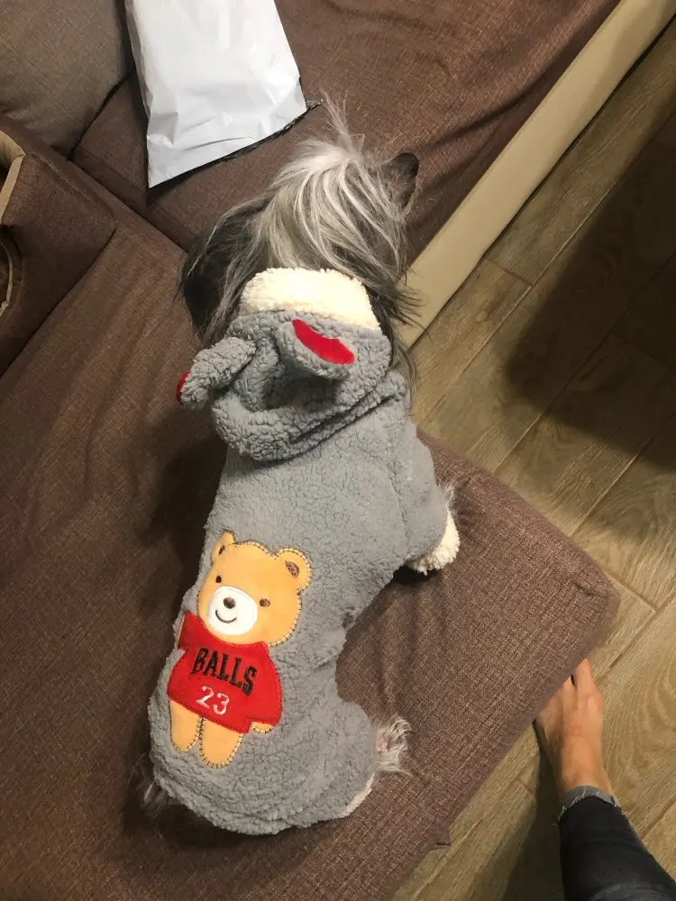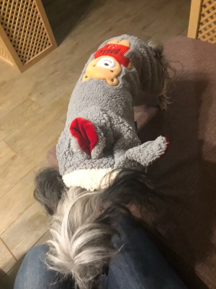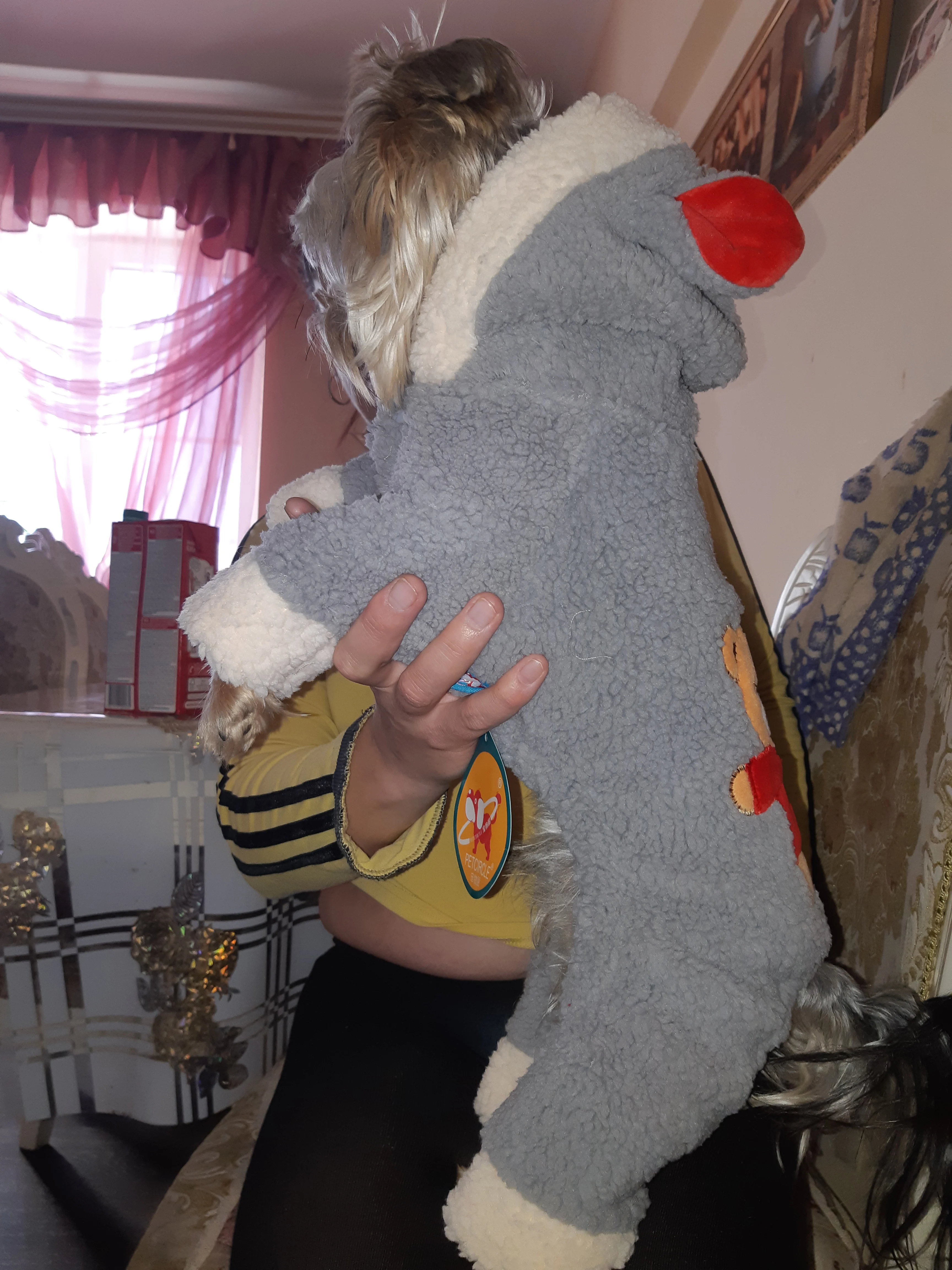 Костюм супер!!! На йоркширского терьера весом 6кг, подошел идеально, как будто по ней шили. Очень мягкий, теплый и прикольный. Качество пошива отличное. Полностью соответствует размер. Я очень довольна. Смело заказывайте у этого продавца! Очень советую. Спасибо продавцу, магазину и АлиЭкспресс!!!!!!!!!! Фото обязательно выставлю позже.