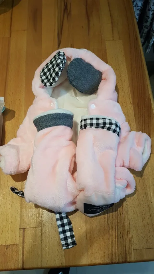 Комбез красивый,мягкий,теплый.Но мой чих весом 1800 утонул в нем.Брала S,не угадала с размером.Продавца рекомендую