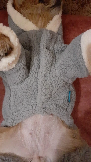 Комбинезон супер, не ожидала что придёт такого отличного качества, думала будет тоненький , но он очень плотный и тёплый, считаю что даже на зиму можно одевать, жаль с размером не угадали , всегда берём L, но в этот раз ошиблись , Йорк просто вываливается из него, очень жаль , перезакажу меньше)