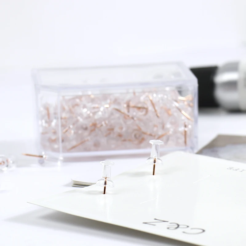 Туту розовое золото Push Pin гвоздь Прозрачный большой палец Tack для фотографии стены мягкая живопись пробка доска Pin офисные аксессуары 100 шт. H0218