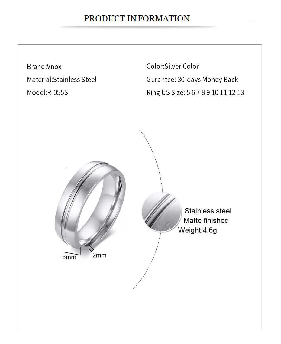 Обручальное кольцо Vnox из нержавеющей стали для мужчин, простое кольцо с тонкой подкладкой 6 мм, нежный повседневный мужской Подарок на годовщину