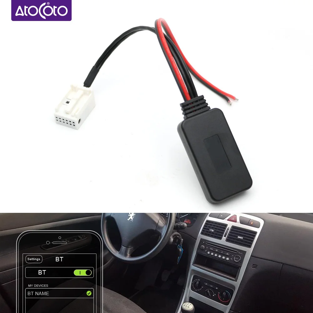-Совместимый с Bluetooth модуль создан специально для Peugeot/Citroen.-Просто подключите 12-контактный разъем к розетке вашего радио-Вы можете просто вставить этот элемент в заднюю магнитолу, затем подключить красный провод к 12 В +, черный провод к 12 В-.-Подключите телефон, mp3 или планшет с bluetooth к модулю-Это версия BT 4,0, пароль при подключении не требуется.-Выберите AUX из вашего радио, и вы можете воспроизводить музыку с телефона в автомобиле.Подберите свой телефон или планшет к BT модулю. И выберите Aux из вашего радио, затем вы можете использовать свой телефон для воспроизведения музыки через Автомобильные колонки.Вы можете услышать музыку с телефона/планшета/mp3 (они должны иметь функцию BT).P.S: только воспроизведение звука, управление рулевым колесом невозможно, не может использоваться для ответа на звонки.