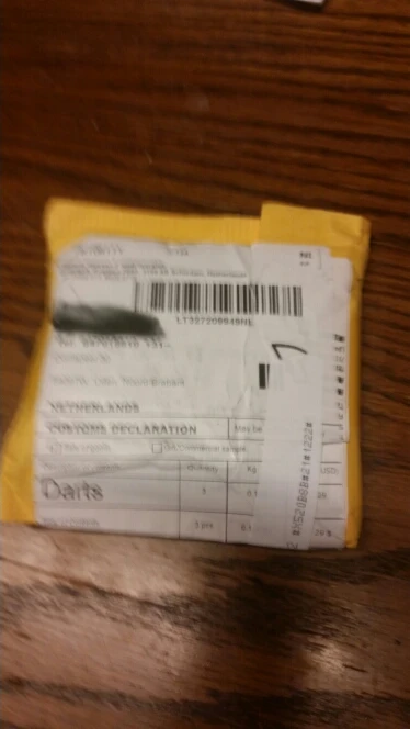 Дошёл быстро, товар вроде качественный, сделал несколько бросков с этими перьями вроде нормально, дротик держит