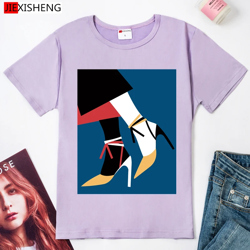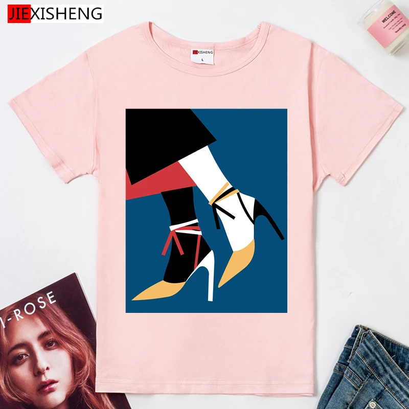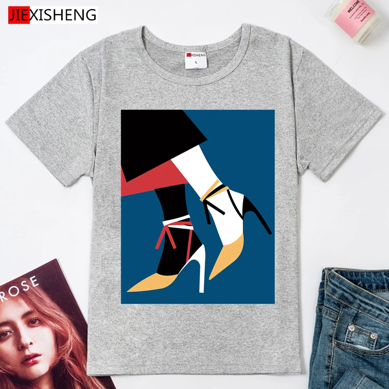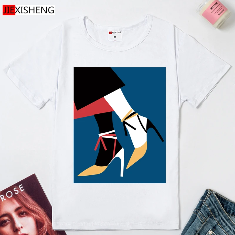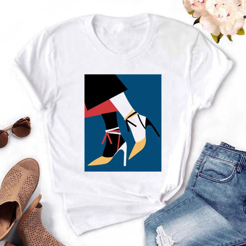 Женская футболка на высоком каблуке с заклепками и принтом, летняя ...