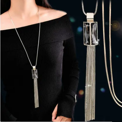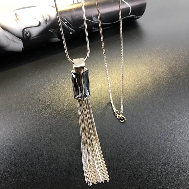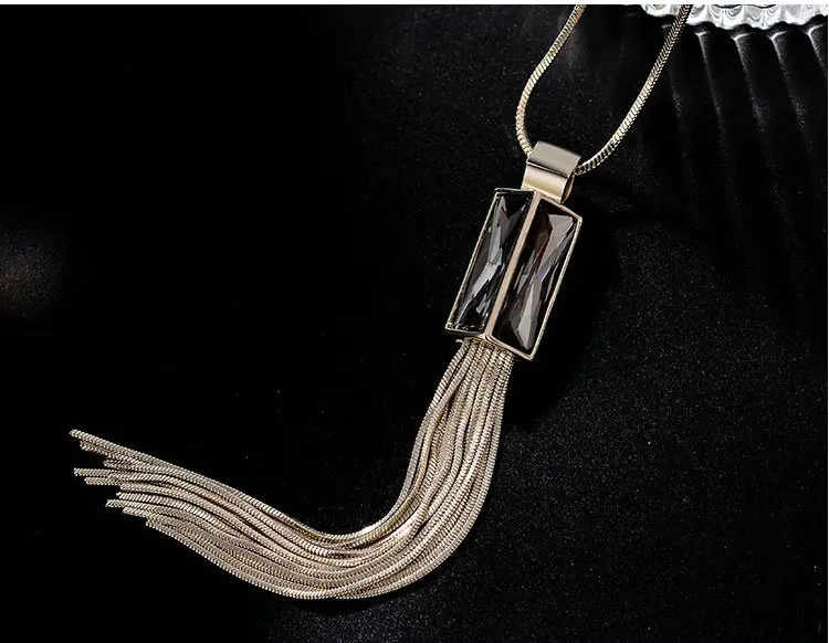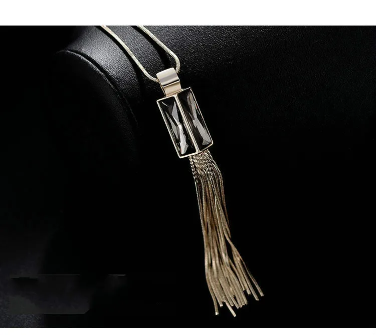 Женское ожерелье с подвеской, длинная цепочка на свитер, декоративное ожерелье с кристаллами, подвеска