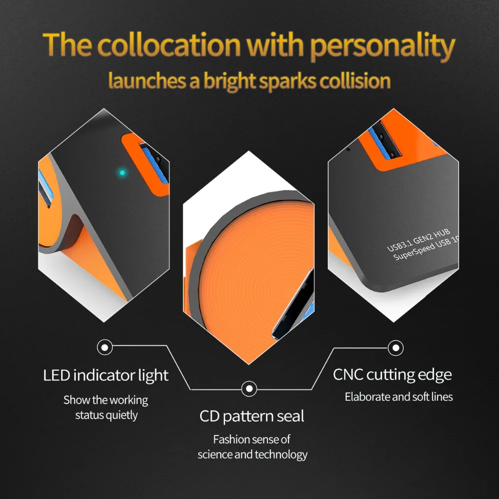 Концентратор ORICO USB3.1 Gen2, 10 Гбитс, алюминиевый, usb-хаб с ад...