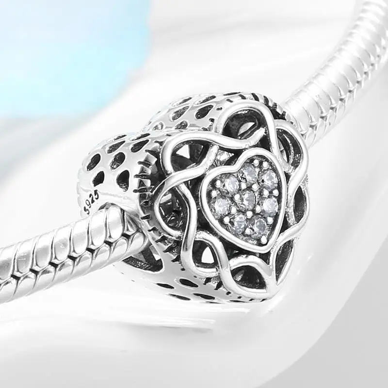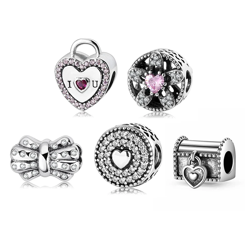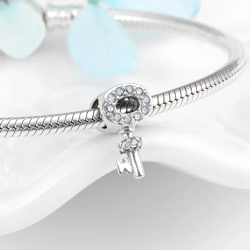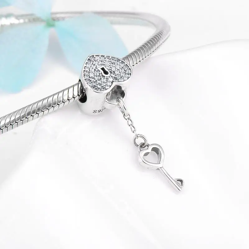 Open My Heart Key Shape 925 пробы Серебряный Очаровательный CZ Bead Fit европейский браслет DIY Подвески и браслеты Изготовление ювелирных изделий
