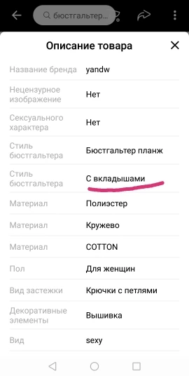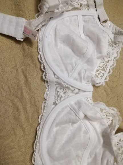 Размер пришел огромный, можно укутаться. Видимо сама неверно поняла размер. Круево тонкое, подкладки нет как и хотела, размер чашек огромен!!! Лямки нериально черные, само кружево такое же, ощущение, что по ниму долго ходили не разуваясь. Страшно было брать в руки!Попробую отстирать... Но не уверена, что поможет. Но доставка быстрая.