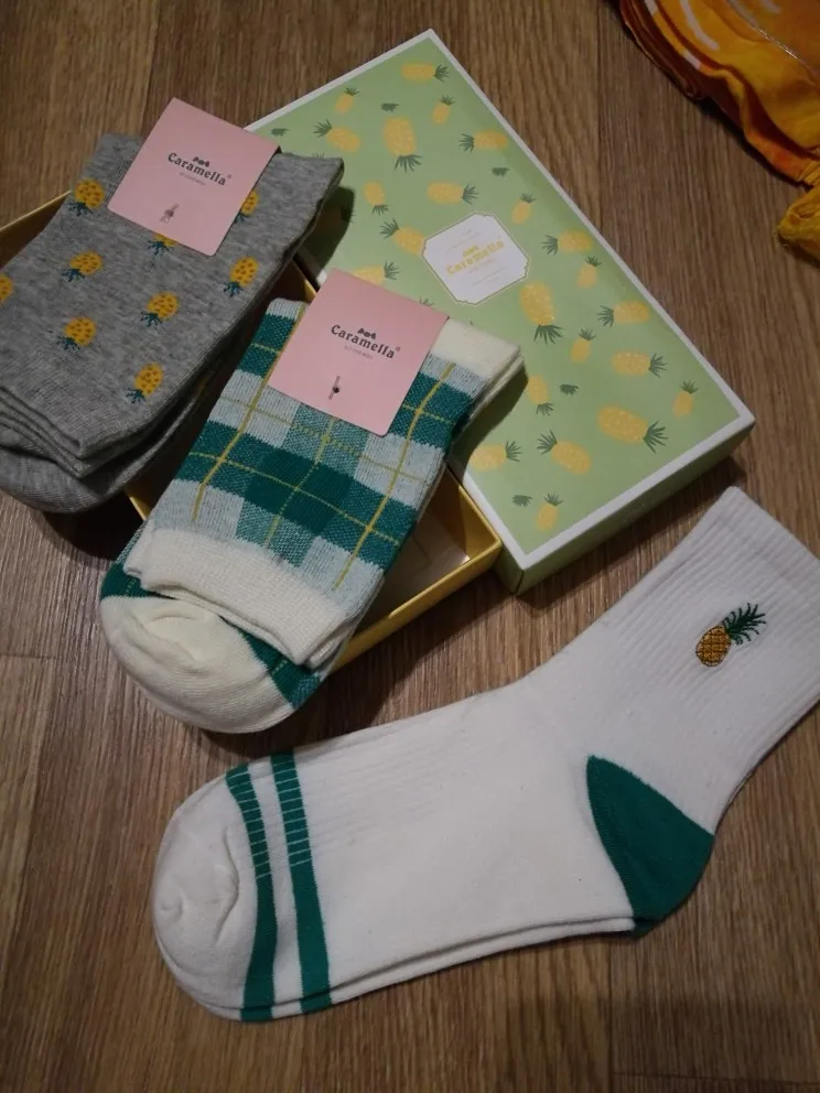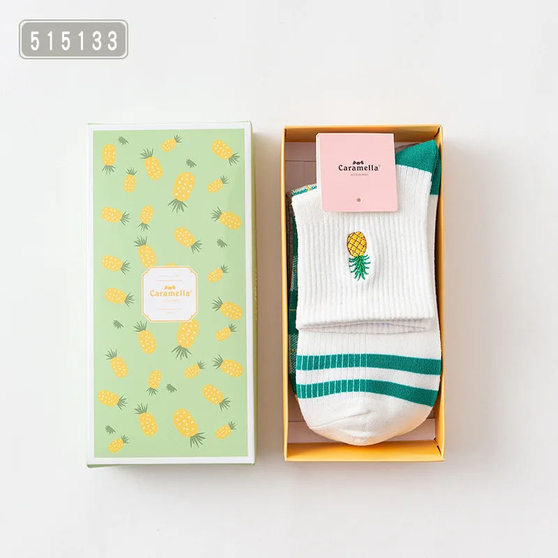 Носки женские, хлопковые, с вышивкой в виде фруктов, 2018-515133, 3 пары515313