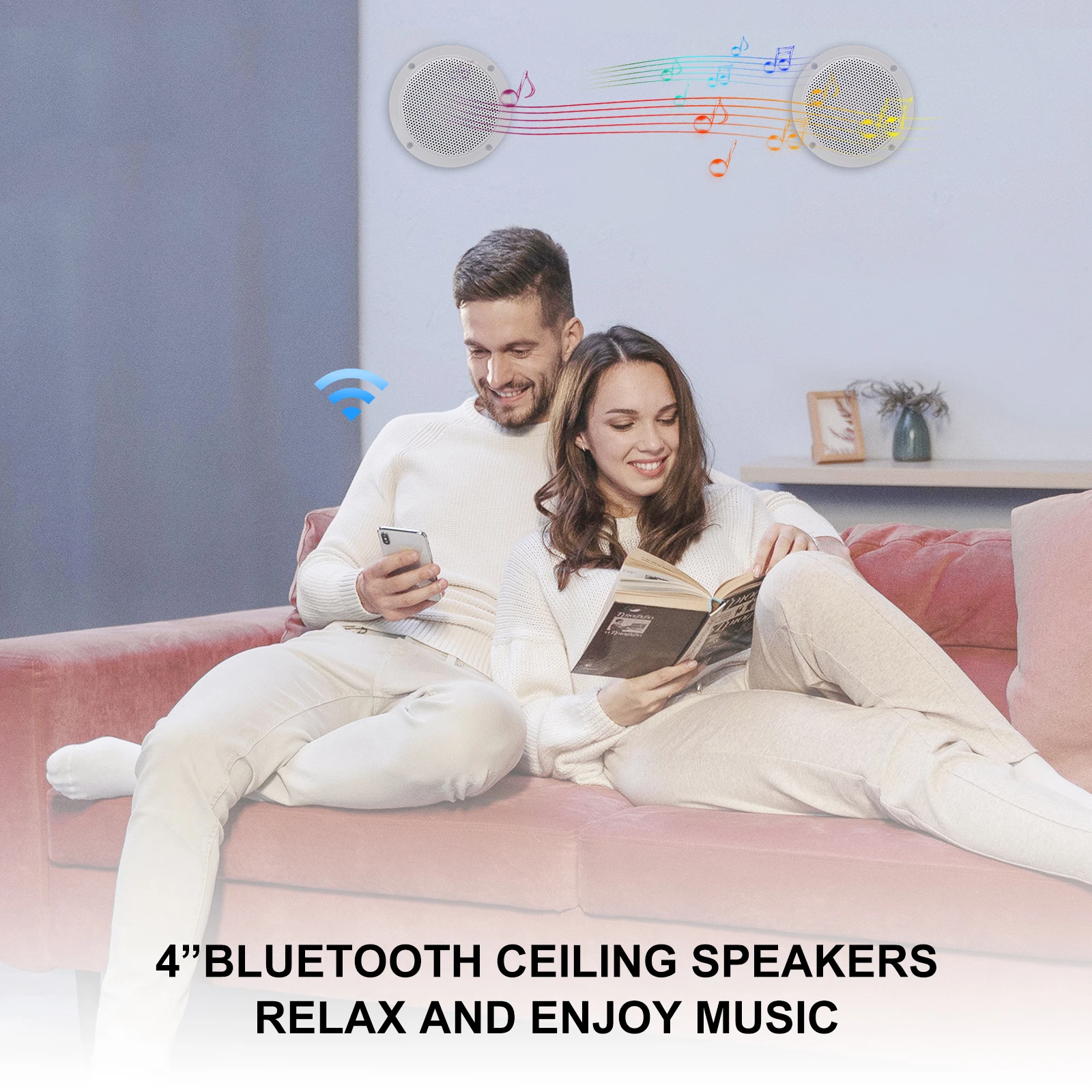 Потолочные колонки Bluetooth с компактным профилем и стереозвуком. Совместим со всеми устройствами Bluetooth. Воспроизводите любимую музыку со своего смартфона, планшета или другого устройства Bluetooth на кухне, в спальнях и ванной комнате с помощью простого и удобного сопряжения