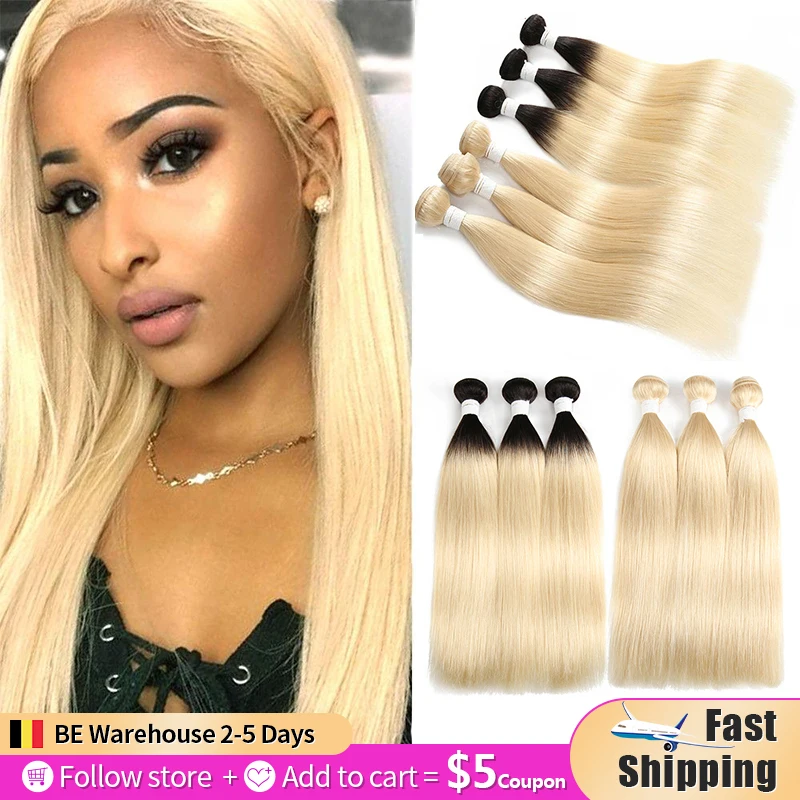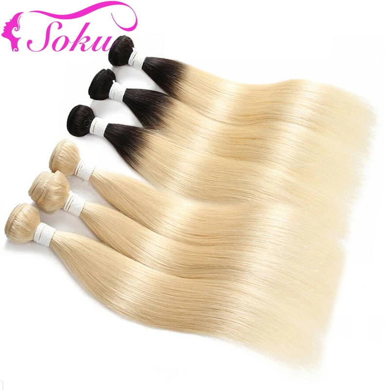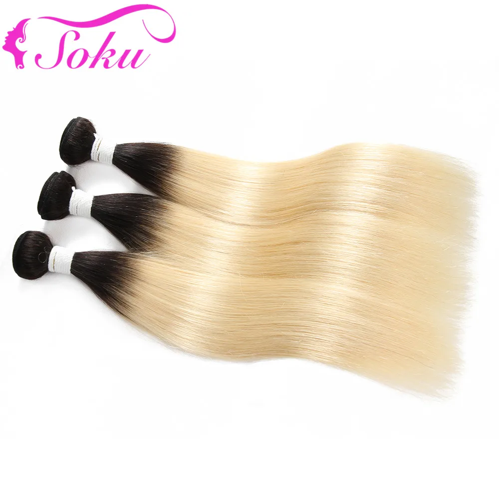 613 светлые бразильские прямые человеческие волосы, пучки 34 шт, милая светлая стая связка, SOKU 100% Искусственные пряди