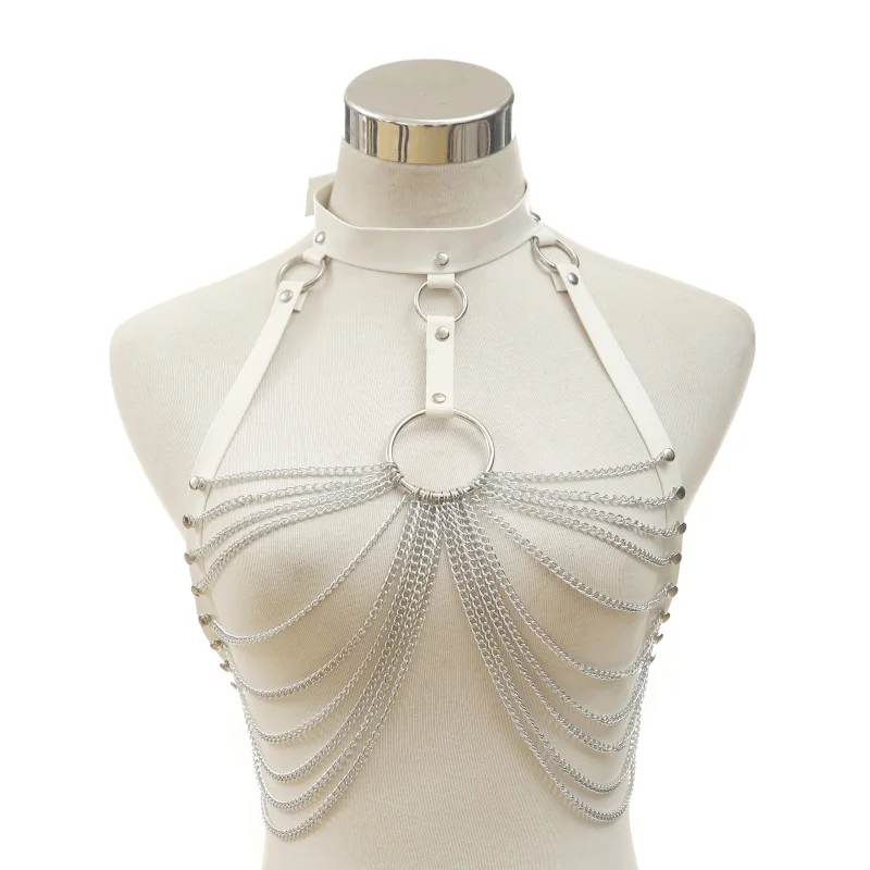 очень круто выглядит. как на обнаженном теле, так и с бюстгальтером. цепочки отстегиваются, проходится поджимать звенья плоскогубцами