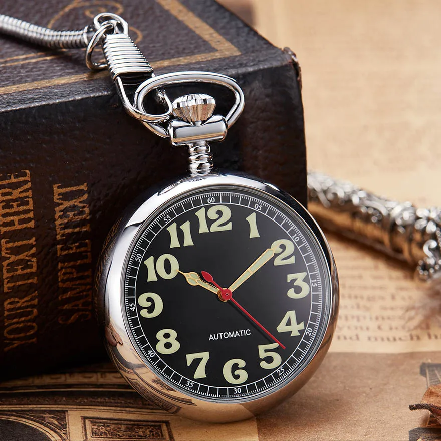 100% self-ветер Автоматические Механические карманные часы световой скелет Золотой Для мужчин Для женщин Fob цепь часы Стильный карманные часы подарки