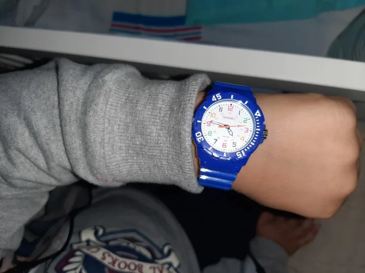 Очень красивые часы для детей 7 и 8 лет! Циферблат может вращаться, часы удобные и водонепроницаемые! Иглы хорошо фосфоресцируют. Я полностью доволен! Спасибо вам