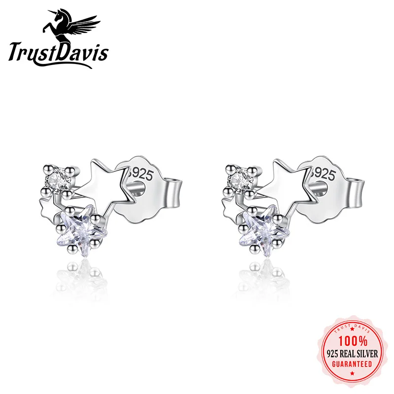 TrustDavis реальные серьги-гвоздики из серебра для женщин-подростков, девушек, друзей и детей, женские серьги из серебра 925 пробы, ювелирные изделия XY1030