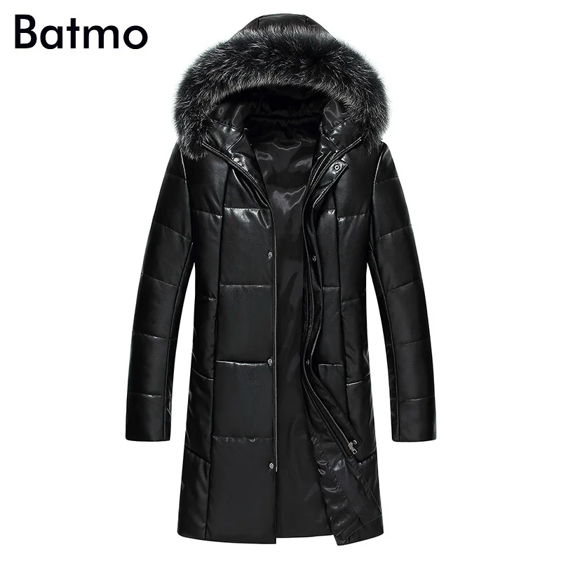 Мужская куртка с капюшоном Batmo, длинная теплая куртка из искусственной кожи на 2019 белом утином пуху, с воротником из меха енота, 95%, зима 1719
