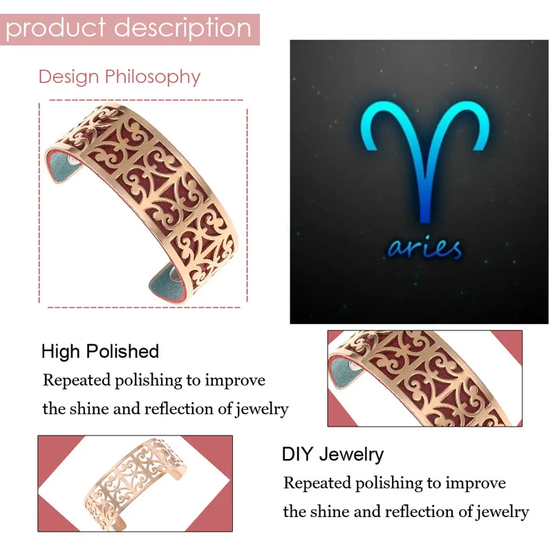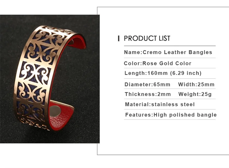 Браслет-манжета из нержавеющей стали, браслеты из розового золота