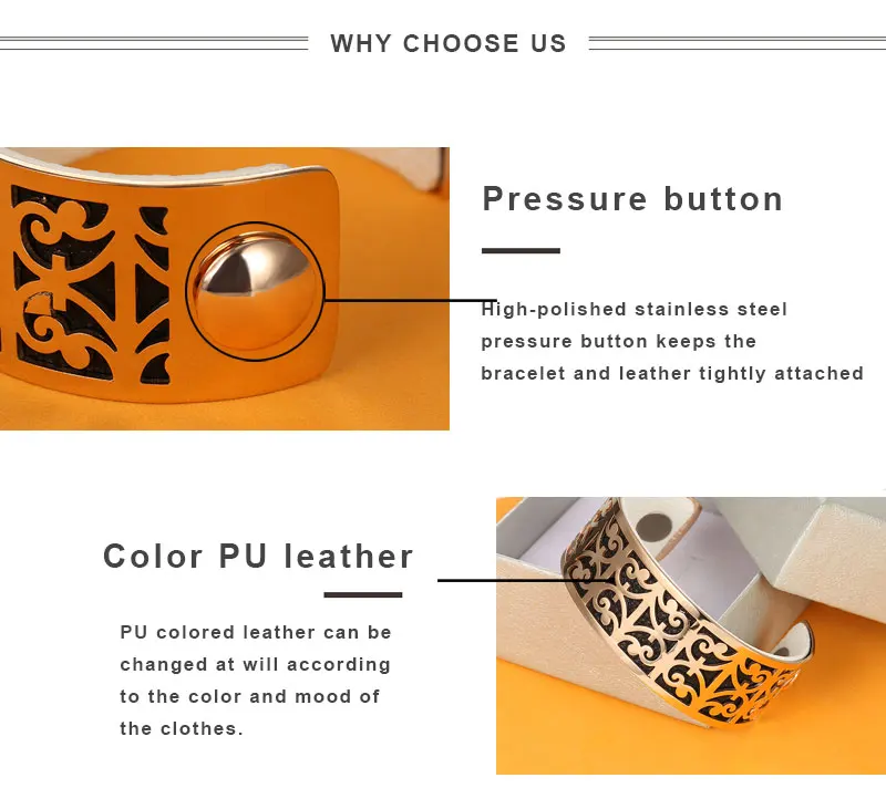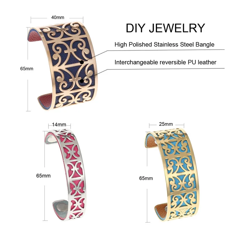 Женский Браслет-манжета из нержавеющей стали, со сменной кожей