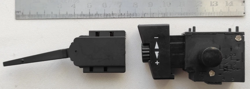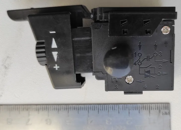 Получил заказ, поставил выключатель, подошёл один в один, всё работает, дрель Ferm. Доставка 1,5 месяца, по России 10 дней, трек не отслеживался.