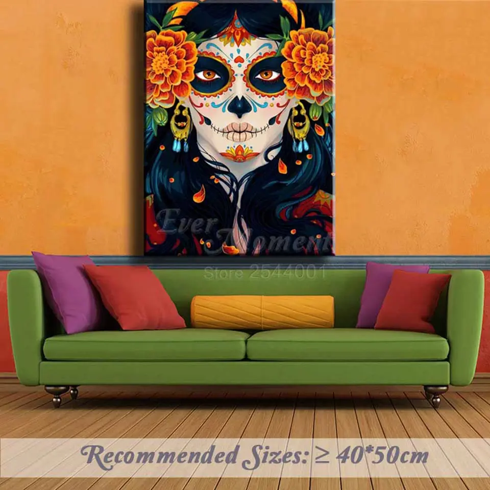 Ever Moment Алмазная картина сахарный череп Девушка Цветочный портрет узоры рукоделие полный квадрат Алмазная мозаика Стразы ASF1067