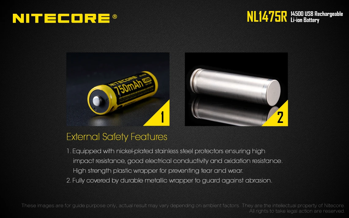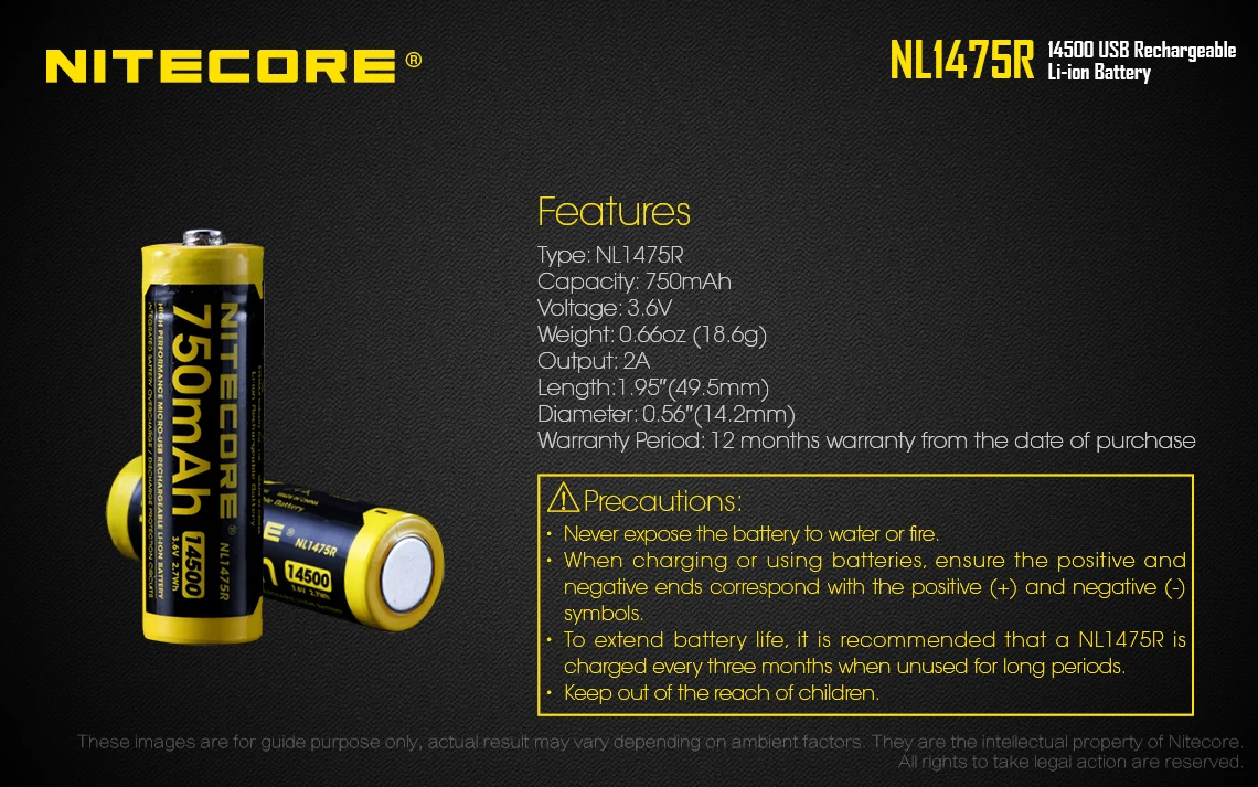 Аккумуляторная литий-ионная батарея NITECORE NL1475R 750 мАч Micro-USB
