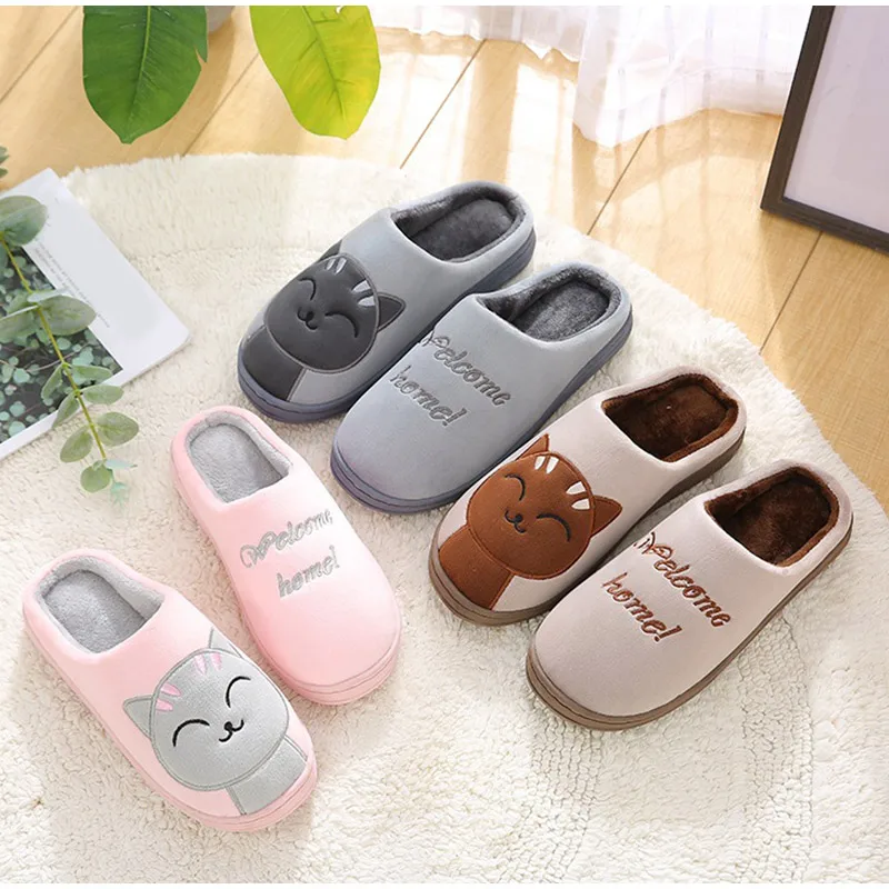 Женские зимние теплые домашние тапочки; Обувь для влюбленных пар; Женская плюшевая обувь без застежки с изображением кота; Мягкая домашняя обувь на плоской подошве; Удобная женская и мужская обувь; Большие размеры