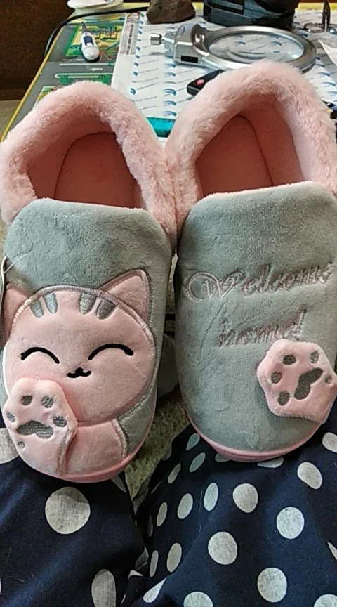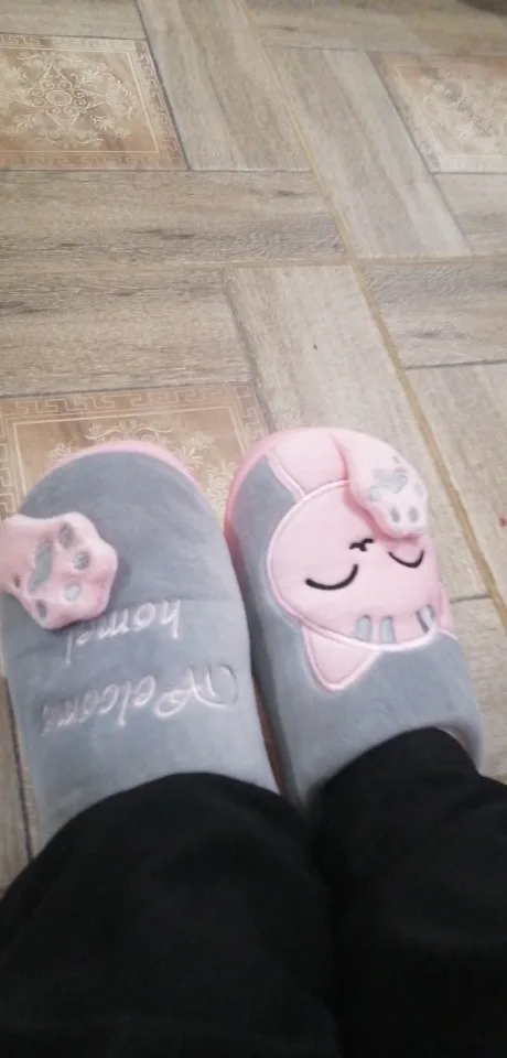 Это самая быстрая доставка за всю историю пользования алика. По поводу тапочек - слегка скошены носки из-за чего пальцам не совсем комфортно. Но мне тапочки всё равно нравятся. Мягкие, удобные и очень симпатичные:)