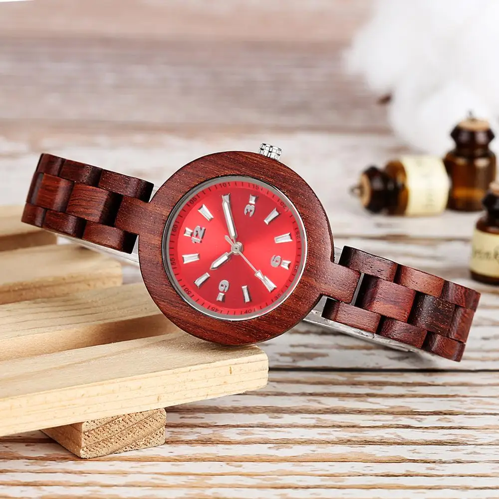 Женские часы из красного сандалового дерева, маленькие деревянные часы, минималистичные женские часы с деревянным ремешком