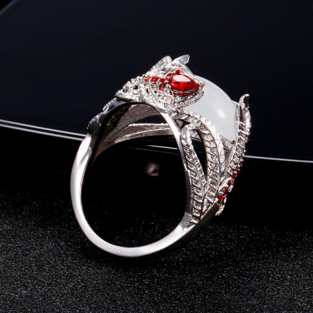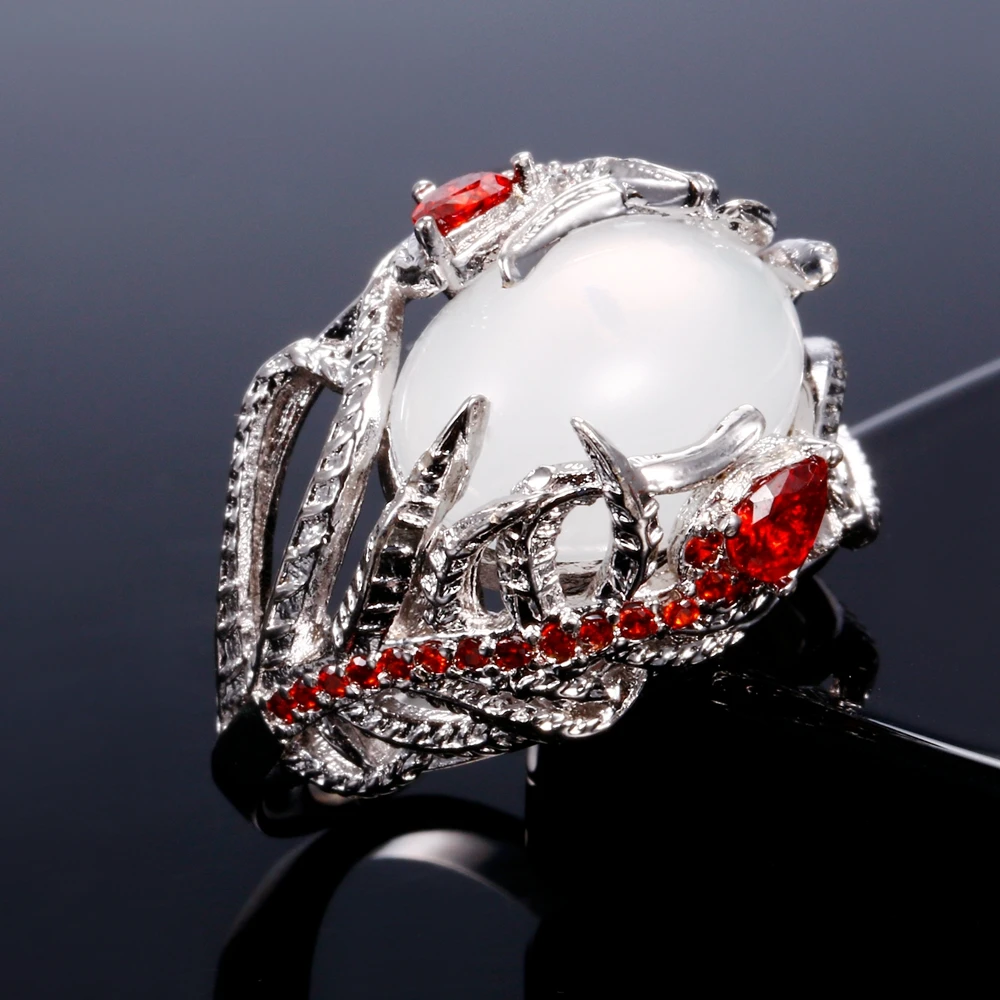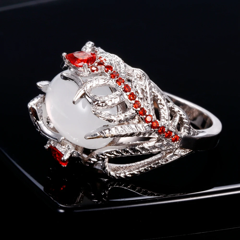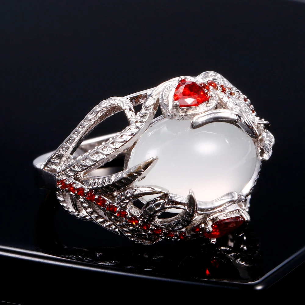 Модные креативные кольца с лунным камнем и перьями для женщин винтажные обручальные кольца с красным Рубином