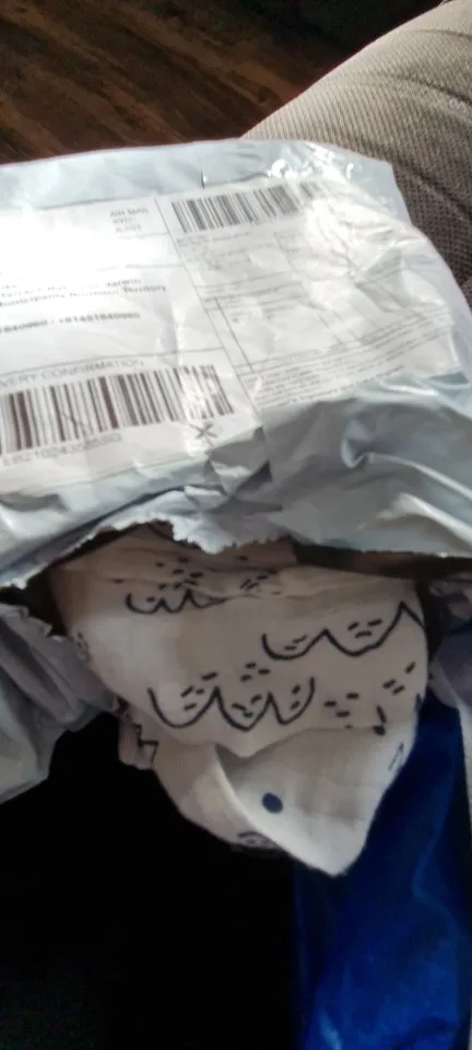 Пеленка пришла с огромной затяжкой! Упаковка была очень плотная, качественная, из чего делаю вывод, что в таком виде она была отправлена именно производителем, а не повредилась во время транспортировки. Поставила 3, а не 1 звезду только потому, что сама пеленка достаточно красивая - яркий четкий принт.