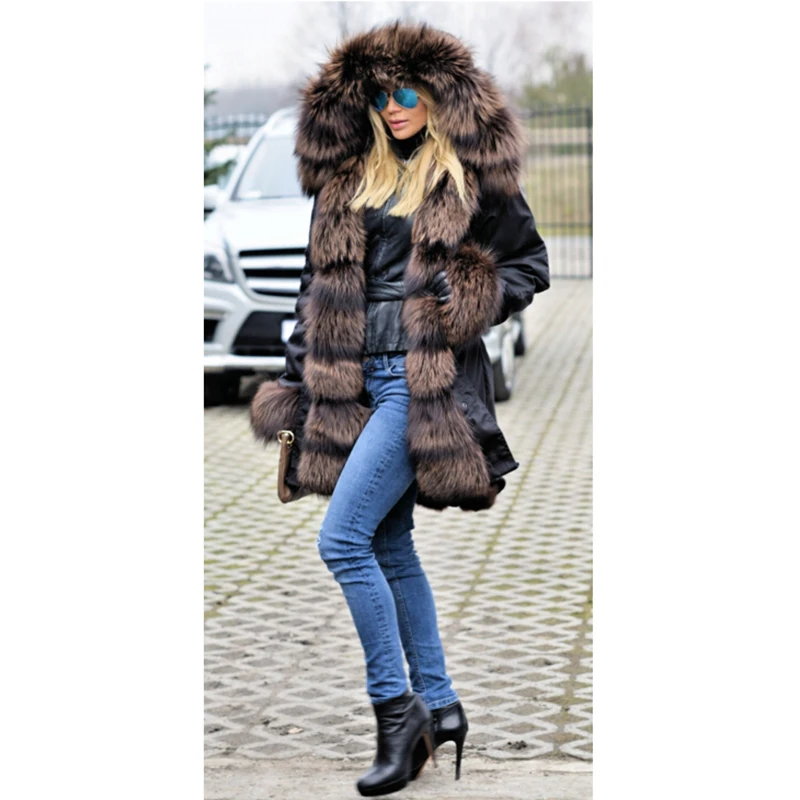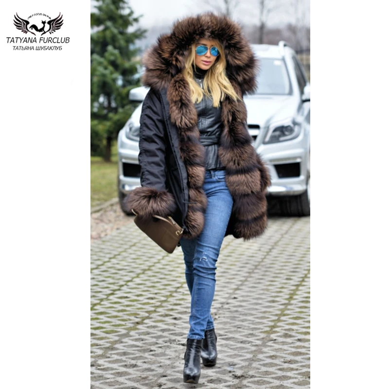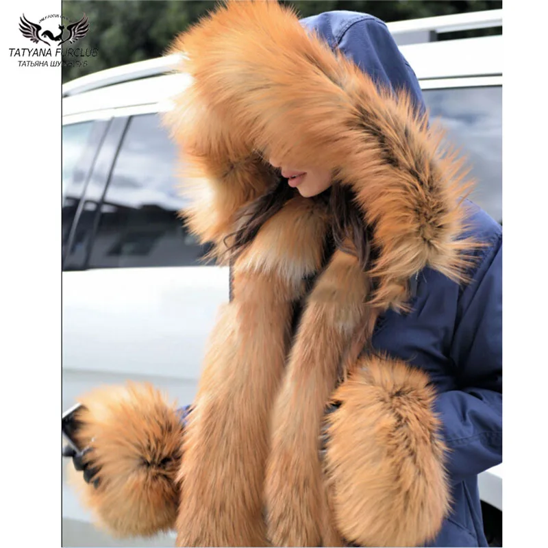 Парка Tatyana женская из натурального меха, воротник и манжеты из лисьего меха, зимняя, теплая, длинная