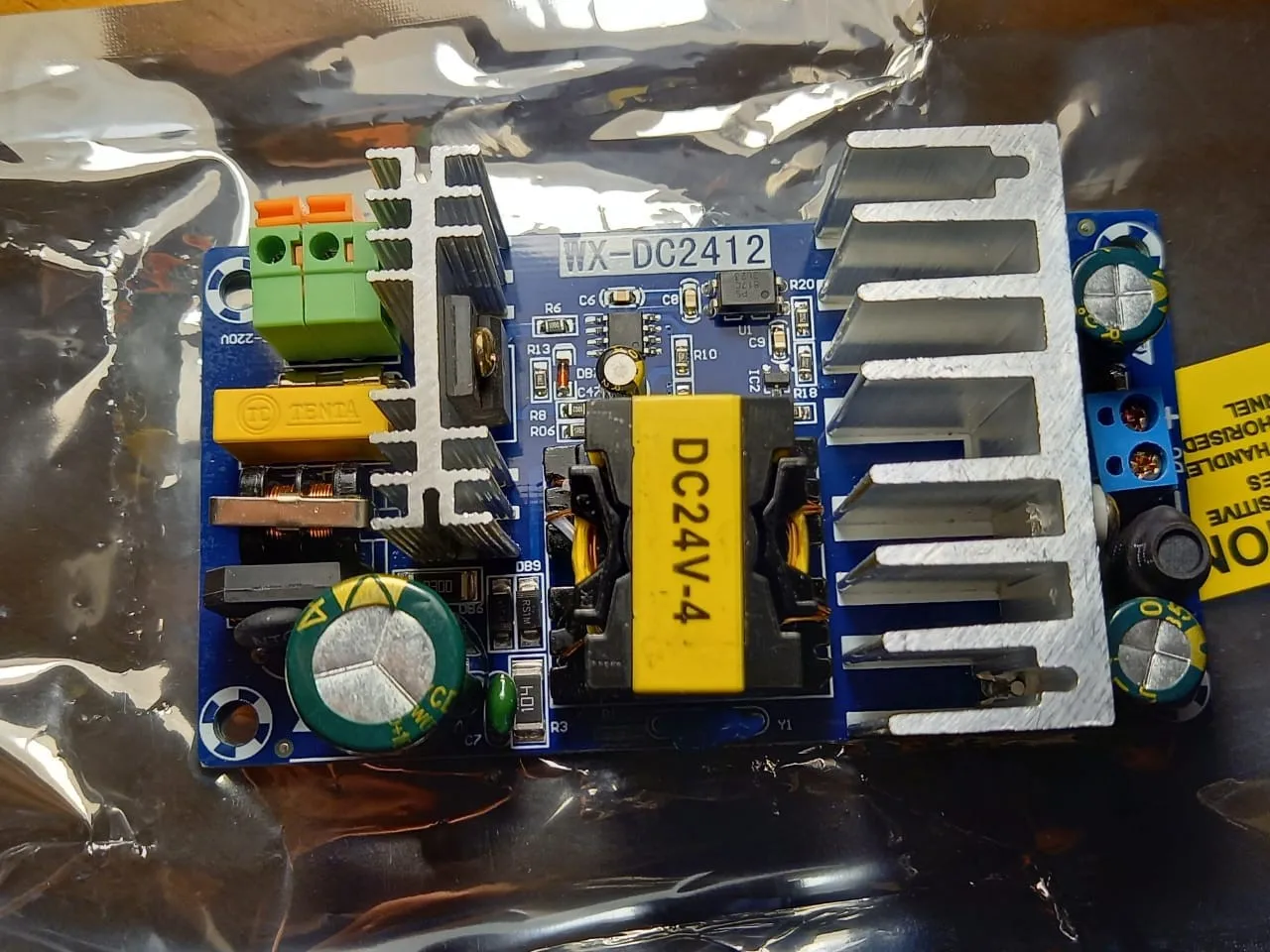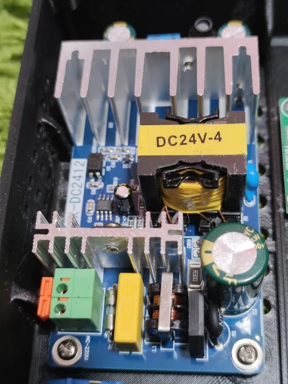 Товар пришел в хорошем состоянии. Вся пайка аккуратная, все пропаяно и т.д. Флюс не смыт местами. На выходе выдает 23.98 V. Входные клемники лучше сразу выпаять и напрямую припаять провода.