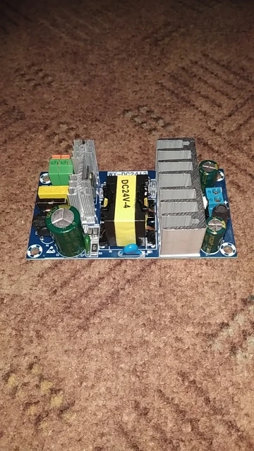 Доставили за 21 день без повреждений. Соответствует описанию продавца. На выходе 23,95 В. Пульсации не проверял. При нагрузке 3 А нагрев не сильный. Флюс не смыт. Y1 и C47 сразу хочется заменить.