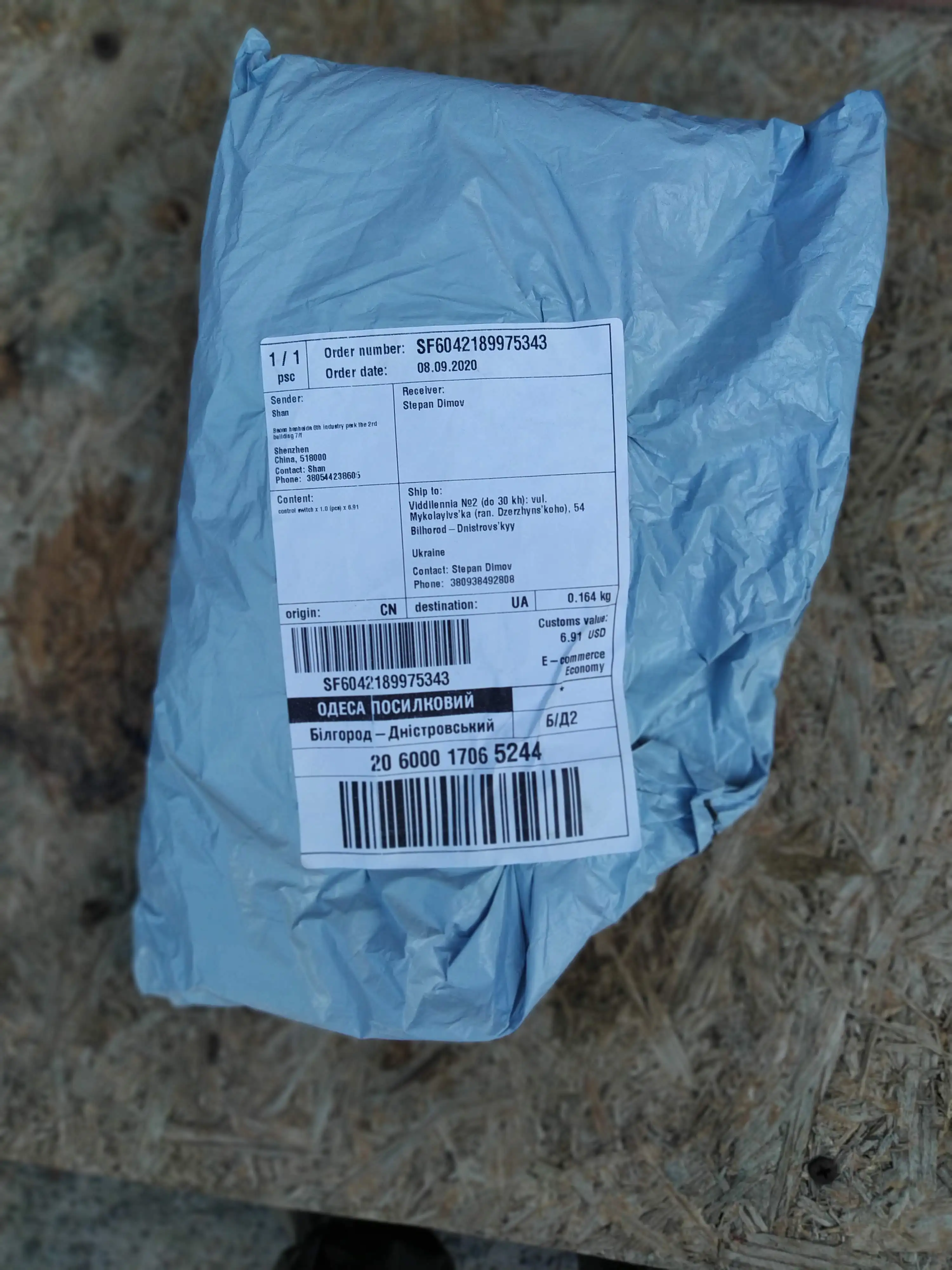 Страна: UA Доставка: SF eParcel 06.09.2020