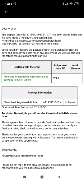 Очень разочарован! Заказал в середине ноября со склада в Польше, когда было доступно 32 шт. Через несколько дней с запросом о продлении срока доставки, после чего они сказали, что больше нет. Через несколько дней они спросили меня, могу ли я ждать доставку из Китая, я принят, и тогда они обещали доставку немедленно. Никакого ответа, только что они вернули мне деньги. Не нужно было ослаблять месяц ничего. (Aliexppress может проверить чат общения с ними) также Aliexpress должен дать вам возможность пожаловаться, если вы находитесь в процессе.