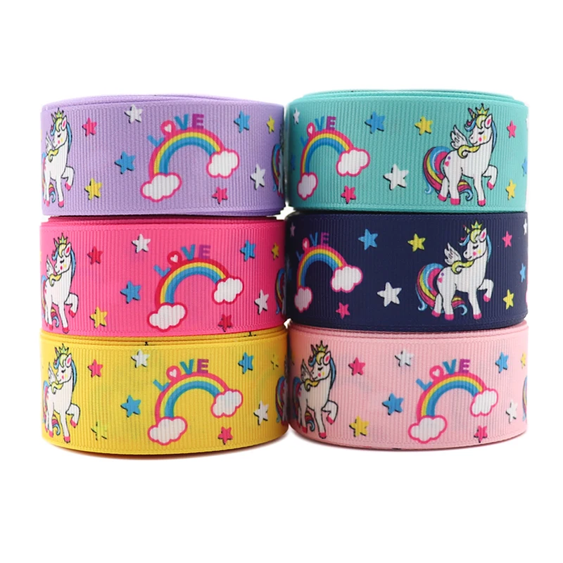 1 дюйм, 25 мм, 5 ярдов, корсажная лента с принтом радужной лошади, банты для волос ручной работы, 100% полиэстер, мягкие корсажные ленты, 18081201