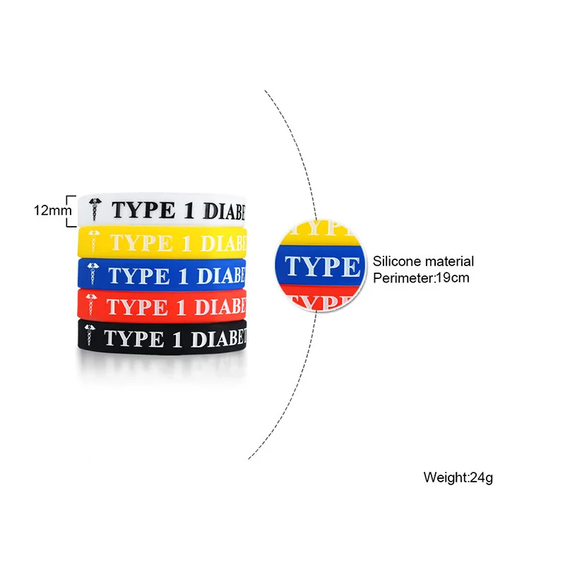 Браслеты для диабета типа 1, 7,48 дюйма, силиконовые медицинские браслеты, 5 шт. в одном наборе