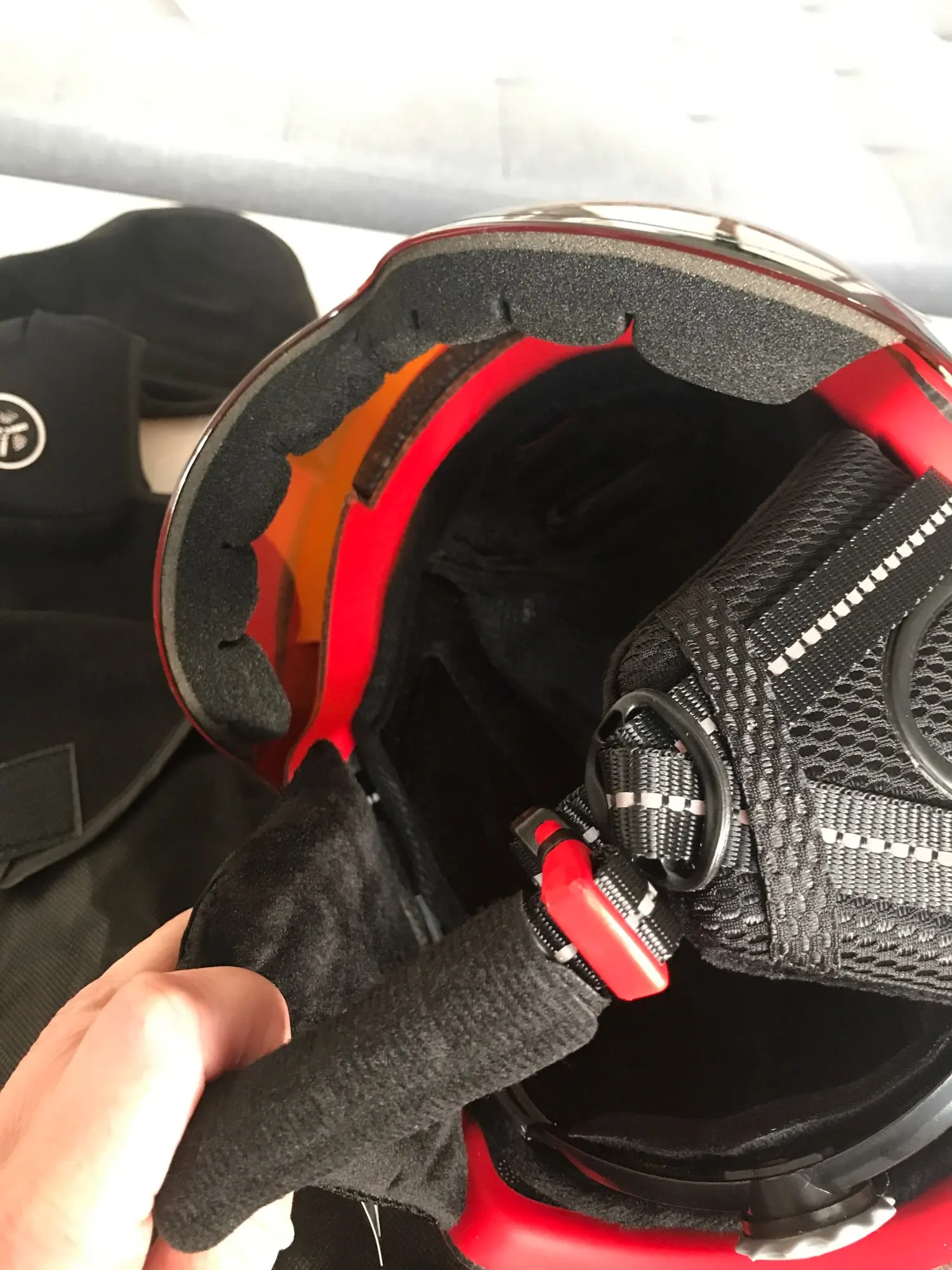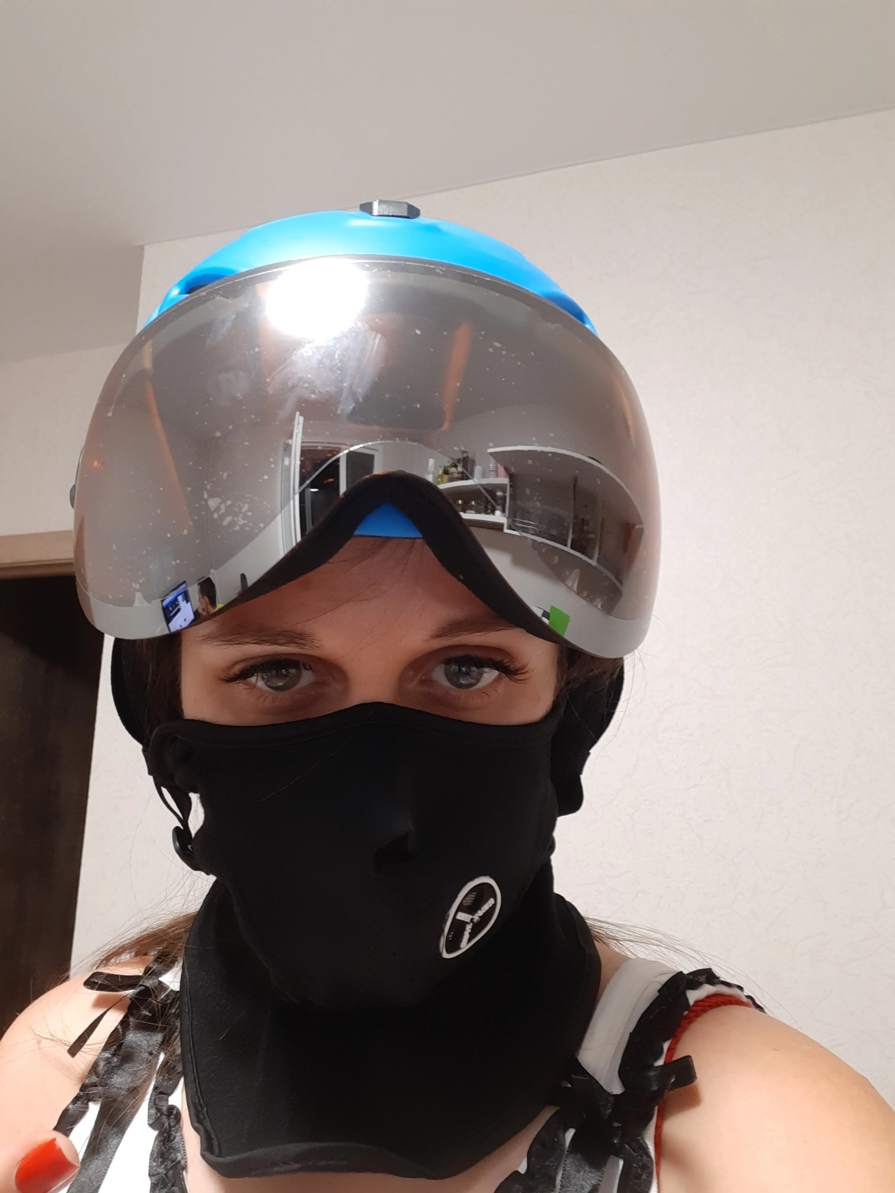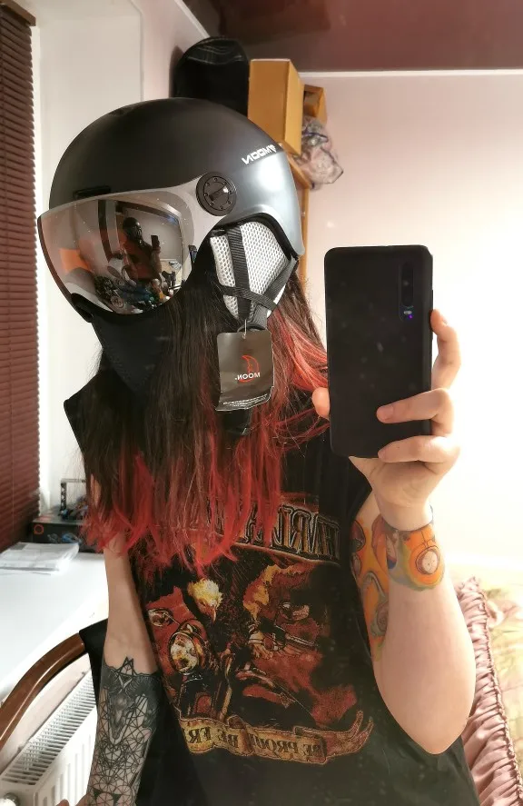 Чёт на 61 бошку xl немного великоват оказался. С шапкой ещё ничего. Очки снизу до лица еле достают - буду доклеивать поролон, иначе с балаклавой сразу анус будет, запотеет в мороз враз. Жду балаклаву с открытым лицом теперь. Ну а так прикольный, вентиляция регулируется. В мороз не катал ещё.