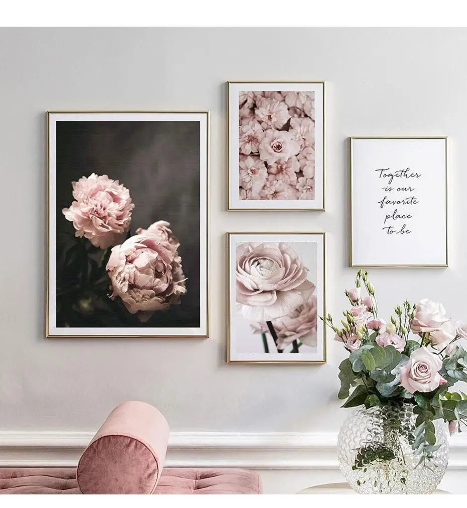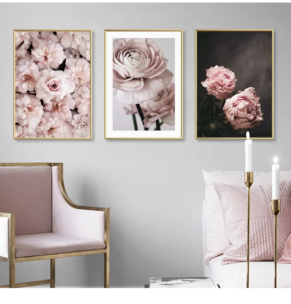 Картина на холсте с розовыми цветами, настенный постер, картина для...