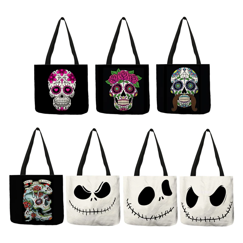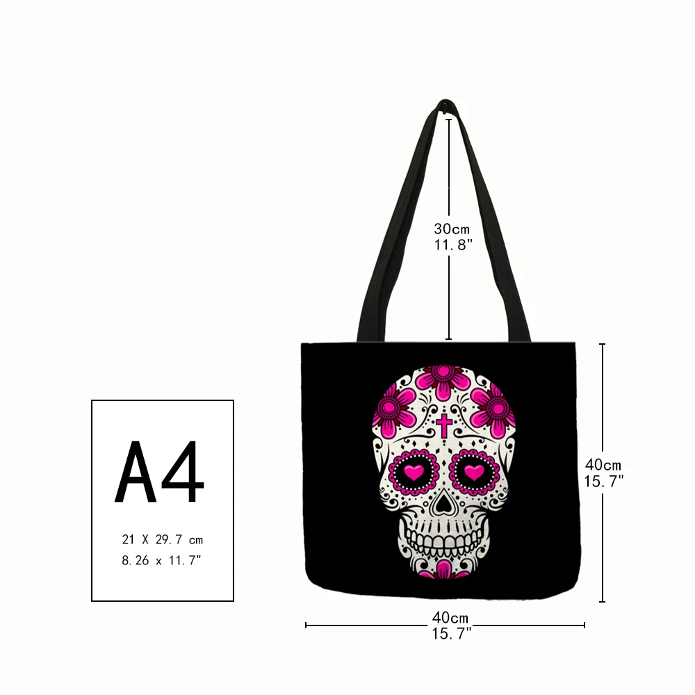 Цветочная сумка-тоут с черепом День мертвых Хэллоуин сумки для женщин и мужчин многоразовые сумки для покупок сумки для путешествий двусторонний принт