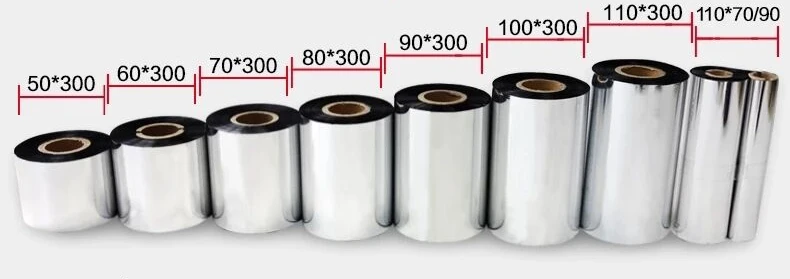 4. «110x300 м i-дюйм» означает термотрансферную ленту из смолы, 300 метров каждый рулон, сердечник 25,4 мм (1 дюйм)