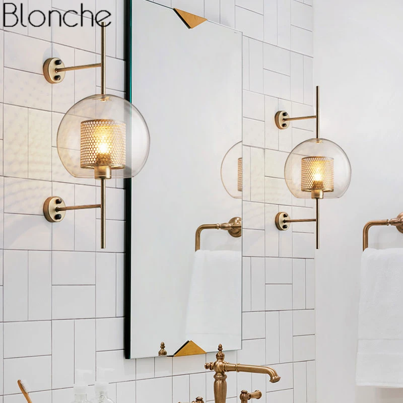 Современный из прозрачного стекла настенные лампы с абажурами, подвесные светильники для спальни, кровати, кабинета, железная зеркальная сетчатая лампа в стиле ретро в стиле лофт