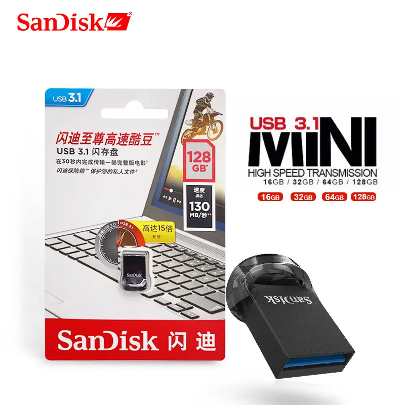 Флеш-накопитель SanDisk, USB 3,1, 256 ГБ, CZ430, Super Mini, 16 ГБ, 32 ГБ, 64 ГБ, 128 ГБ, высокоскоростной флеш-накопитель до 130, МБс.