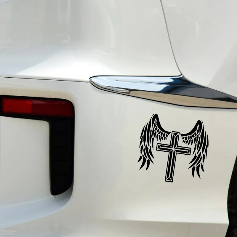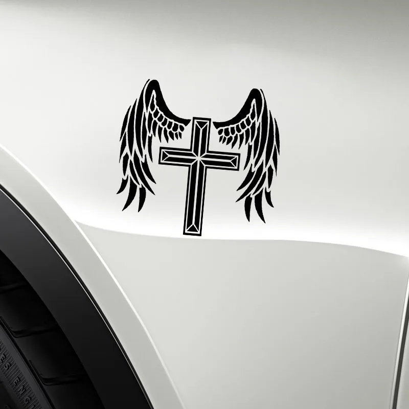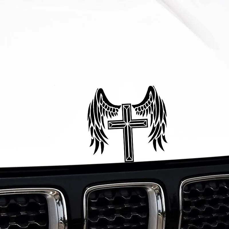 YJZT 14,1*13,3 см крест ангел защитит вас крутой дизайн автомобиля стикер виниловая наклейка черныйсеребристый покрывающий тело C20-1532