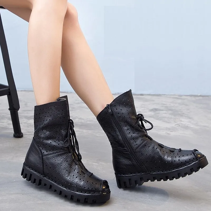Новые осенние женские ботинки BeckyWalk 2021, дышащие ботильоны на плоской подошве с дырками, женская модная повседневная обувь из натуральной кожи WSH3063