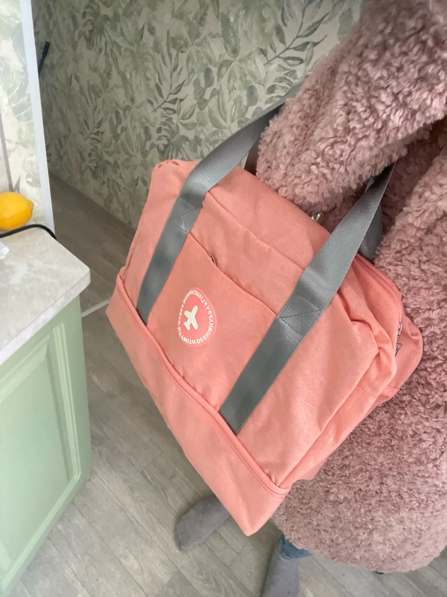В целом достаточно удобная сумка. один отдел под зал, второй под бассейн и под кросовки. минус - бутыль для воды и тапки уже влезают с натяжкой. Особенно порадовал отдел под бассейн! крепкие ручки!