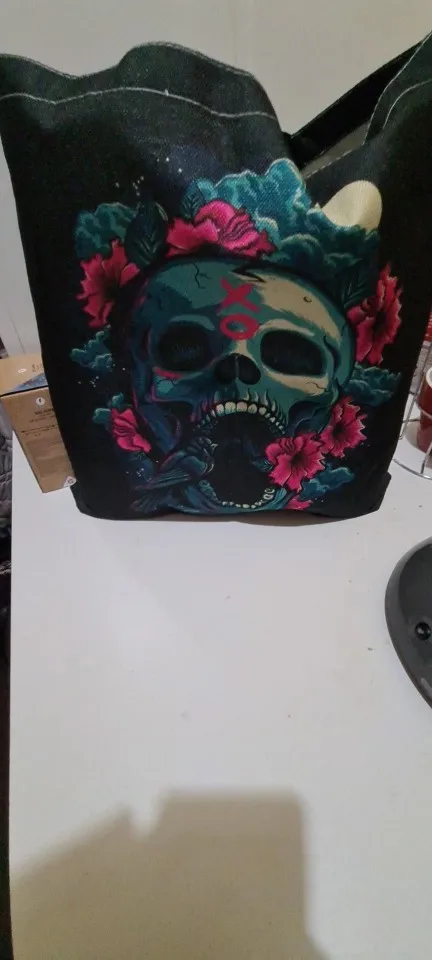 Льняная сумка-тоут с цветочным принтом и черепом, многоразовые сумки для покупок, складные Женские повседневные сумки, женские тканевые тоуты