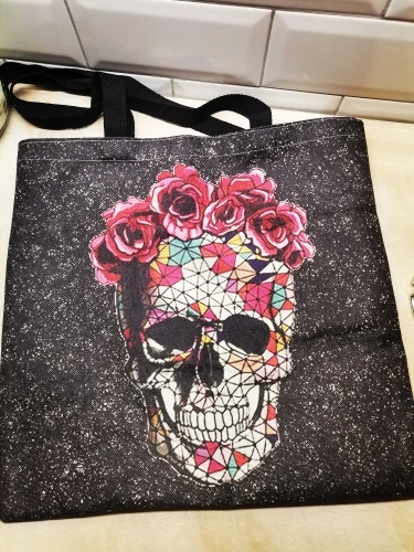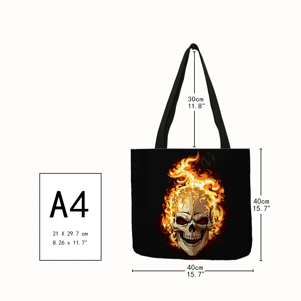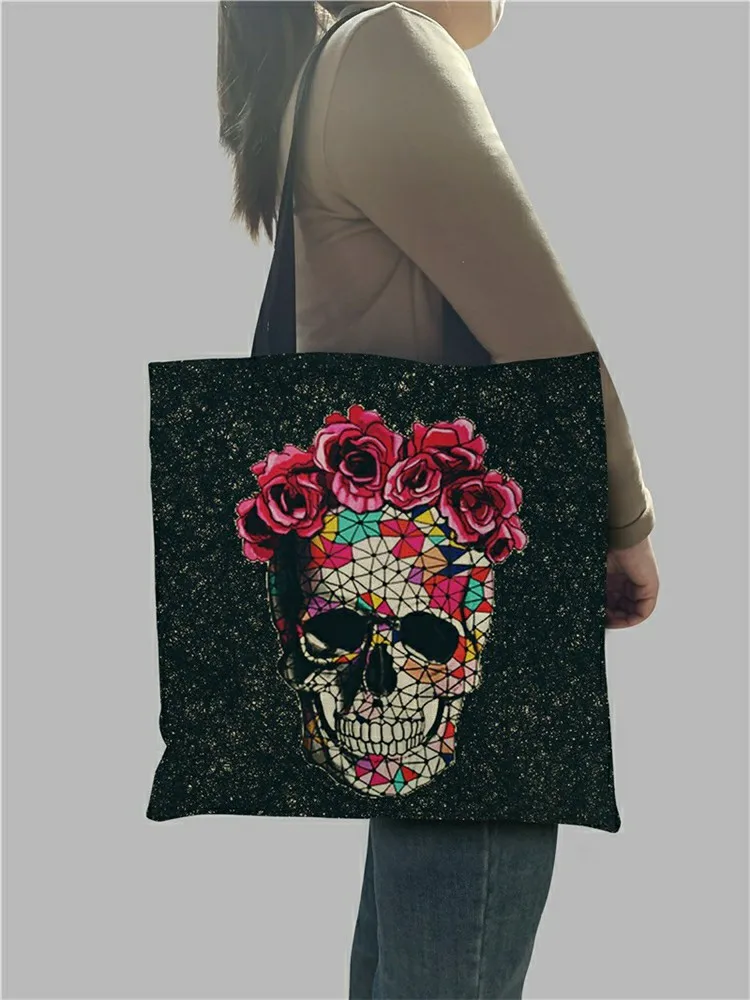 Льняная сумка-тоут с цветочным принтом черепа, многоразовые сумки для покупок, складные Женские повседневные сумки, женские тканевые сумки-тоут
